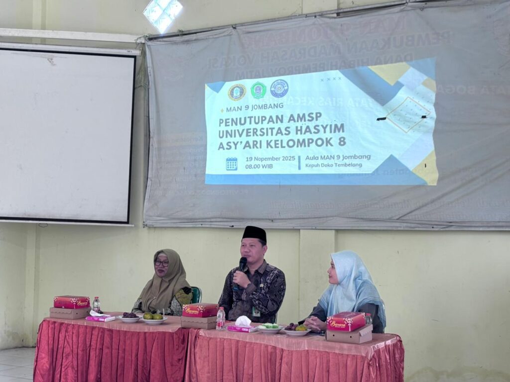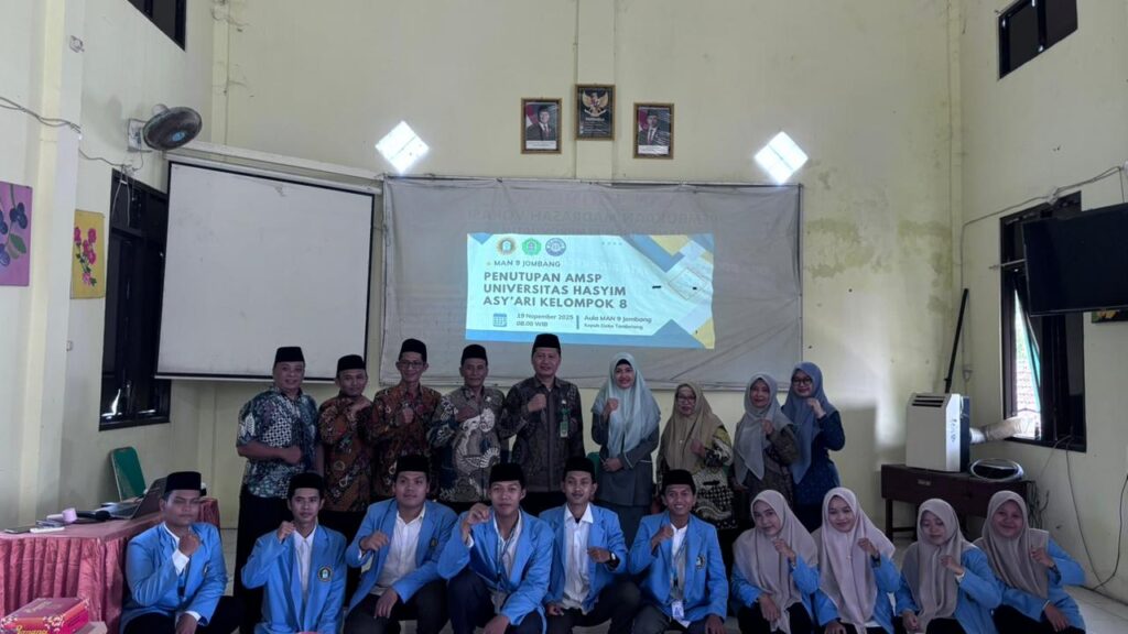 Jombang, 18 November 2025– Program Asistensi Mengajar Satuan Pendidikan (AMSP) Universitas Hasyim Asy’ari (UNHASY) Tebuireng Jombang Kelompok 8 secara resmi ditutup. Acara penutupan yang berlangsung haru namun penuh makna ini diselenggarakan di Aula MAN 9 Jombang dan dihadiri langsung oleh Kepala MAN 9 Jombang, Bapak Masrukhin, M.Pdi, serta Dosen Pembimbing Lapangan (DPL) dari UNHASY, Ibu Aida Arini, M.PdI