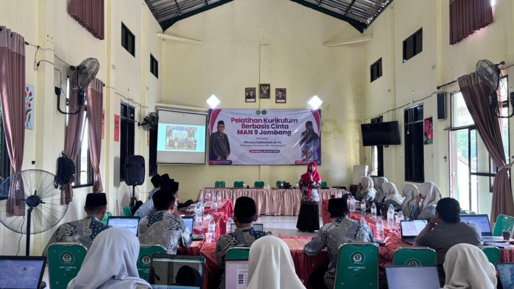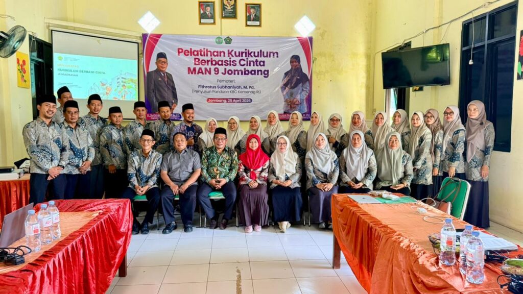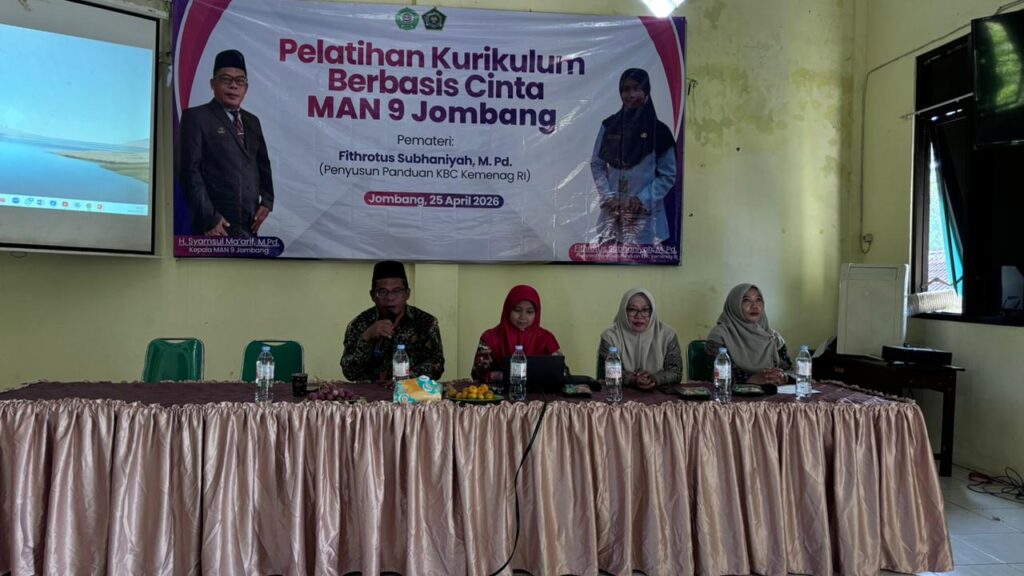 JOMBANG, 25 April 2026 – Madrasah Aliyah Negeri (MAN) 9 Jombang terus berinovasi dalam meningkatkan kualitas pedagogik para pendidiknya. Terbaru, madrasah ini menggelar pelatihan intensif bertajuk “Implementasi Kurikulum Berbasis Cinta (KBC)” yang diikuti oleh seluruh jajaran guru, bertempat di aula utama madrasah.